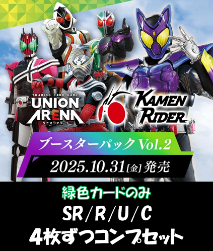 ●2025/10/31(金)に発売されるブースター『仮面ライダー Vol.2 【EX12BT】』のSR/R/U/Cの緑のみ4枚コンプセットです。